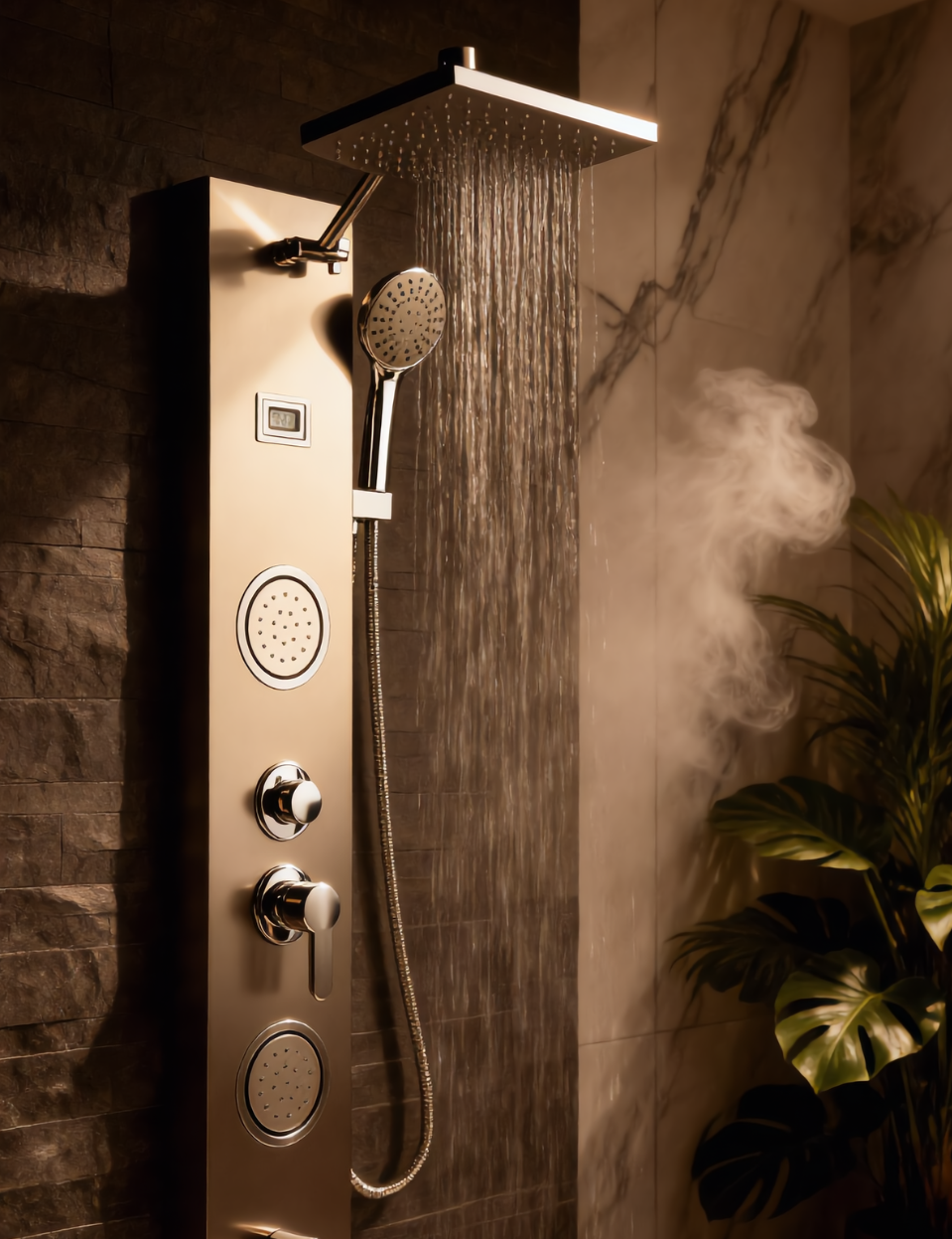 La colonne de douche AQUAÏA SilverFlow a été conçue pour proposer un ensemble complet, fonctionnel et adapté aux salles de bain contemporaines.